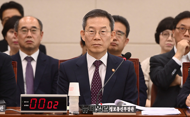이종호 과학기술정보통신부 장관이 16일 오후 서울 여의도 국회에서 열린 과학기술정보방송통신위원회 전체회의에 출석해 자리하고 있다.