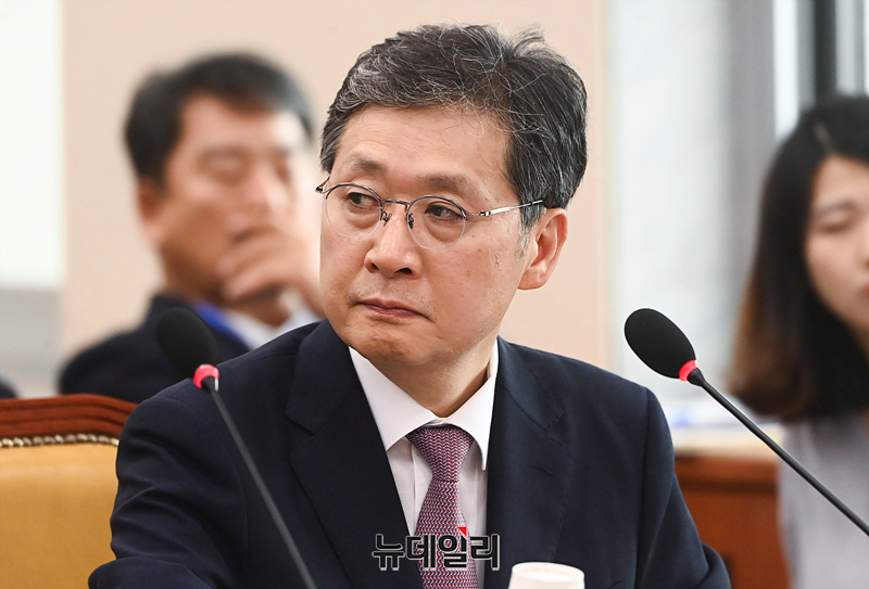 윤영빈 우주항공청장이 16일 오후 서울 여의도 국회에서 열린 과학기술정보방송통신위원회 전체회의에 출석해 자리하고 있다.
