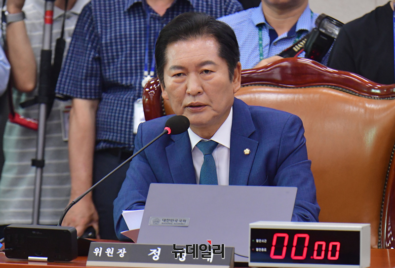 정청래 국회 법제사법위원장이 16일 국회에서 열린 법제사법위원회 전채회의에서 의사진행을 하고 있다.