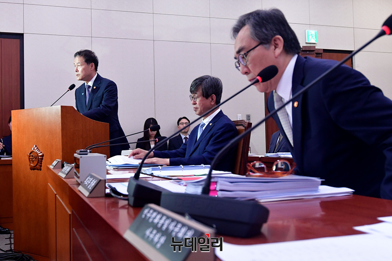 김영호 통일부장관이 17일 오후 국회에서 열린 외교통일위원회 전체회의에서 업무보고를 하고 있다.