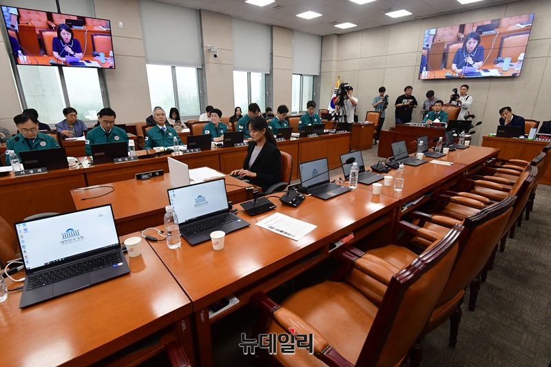 이날 국민의힘 의원들은 신정훈 위원장의 진행 방식을 항의하며 전원 퇴장했다.