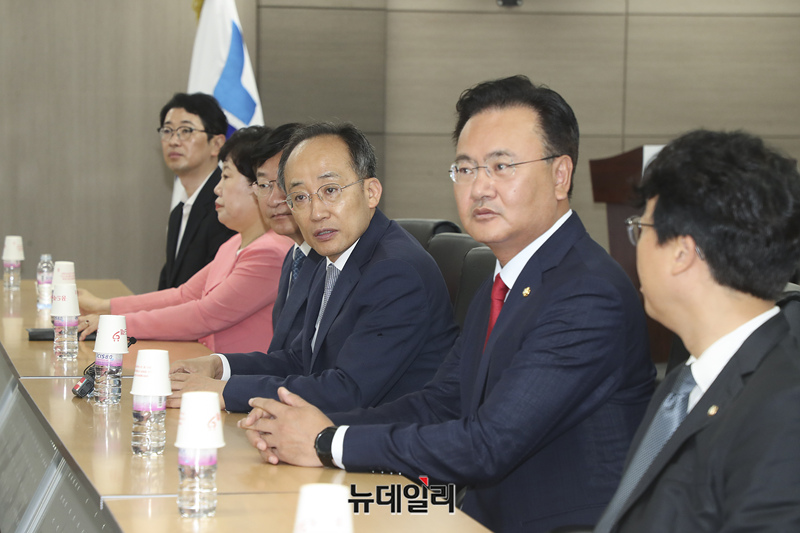 추경호 국민의힘 원내대표가 18일 오후 정부과천청사 내 고위공직자범죄수사처를 방문해 채상병 사건에 대한 신속한 수사를 촉구하고 있다. (사진=국민의힘)