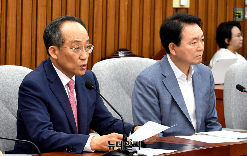 이날 추 원내대표는 '윤석열 대통령 탄핵소추안 발의 요청' 국민동의 청원 청문회와 관련해 "이재명 한 사람을 위한 초유의 방탄용 탄핵쇼를 하겠다는 것"이라고 밝혔다.