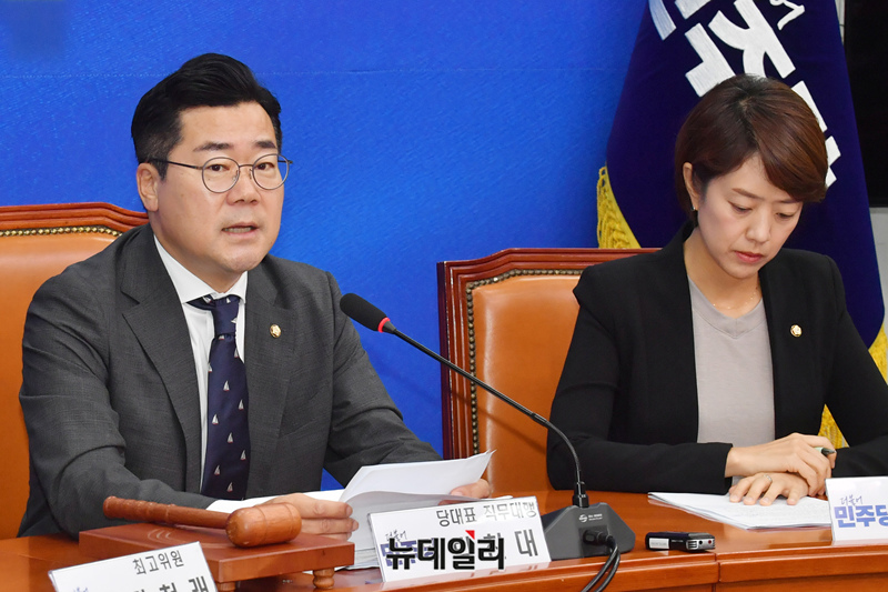 박찬대 더불어민주당 당대표 직무대행 겸 원내대표가 22일 오전 국회에서 열린 최고위원회의를 주재하고 있다.