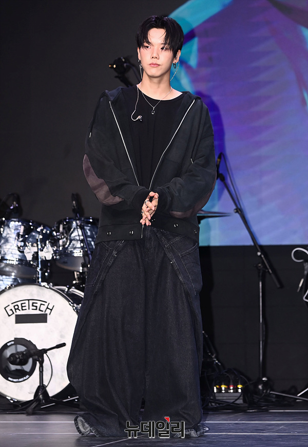 밴드 케이브(KAVE) 오너가 23일 오후 서울 마포구 무신사 개러지에서 열린 데뷔 쇼케이스에서 포즈를 취하고 있다.