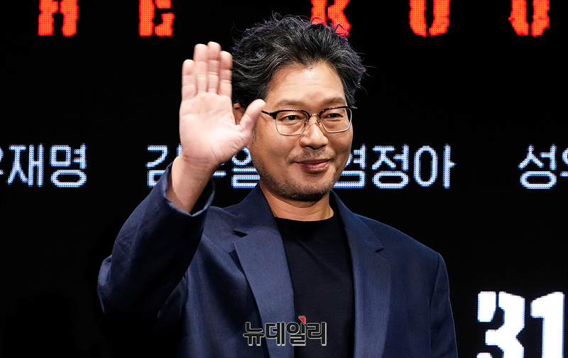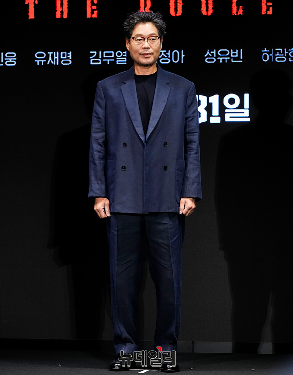 배우 유재명이 24일 오전 서울 여의도 콘래드 호텔에서 열린 디즈니 플러스 드라마 '노 웨이 아웃 : 더 룰렛' 제작발표회에서 포즈를 취하고 있다.