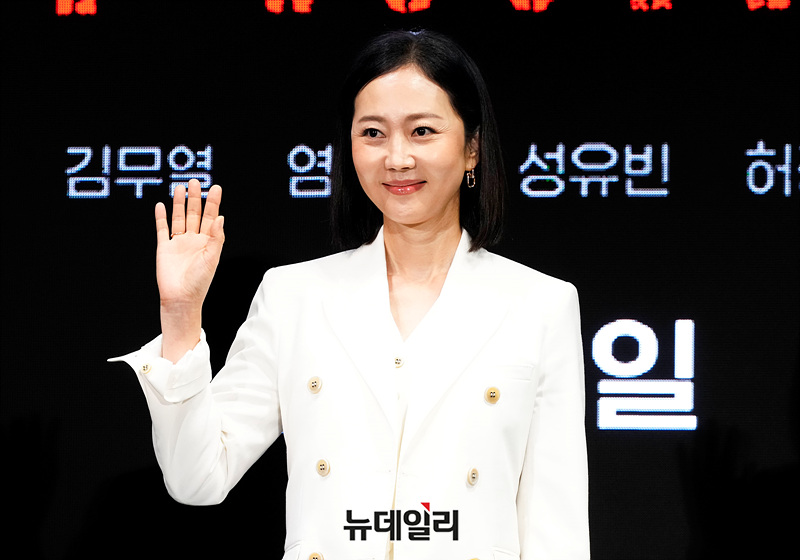 배우 염정아가 24일 오전 서울 여의도 콘래드 호텔에서 열린 디즈니 플러스 드라마 '노 웨이 아웃 : 더 룰렛' 제작발표회에서 포즈를 취하고 있다.