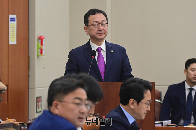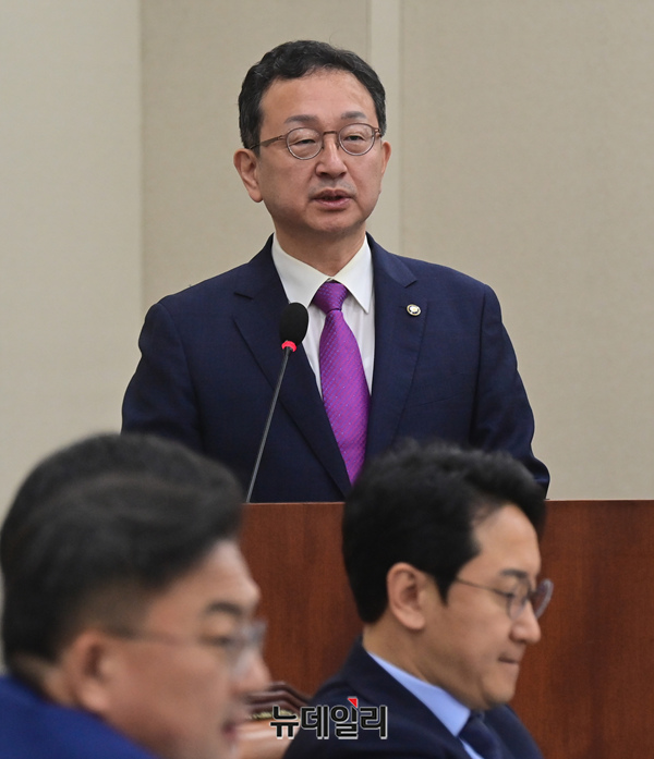 정승윤 국민권익위원회 부원장이 24일 오전 국회에서 열린 정무위원회 전체위원회서 의원들의 질문에 답하고 있다.