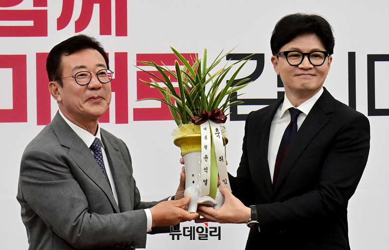 [포토] 취임 축하난 전달받는 한동훈 대표