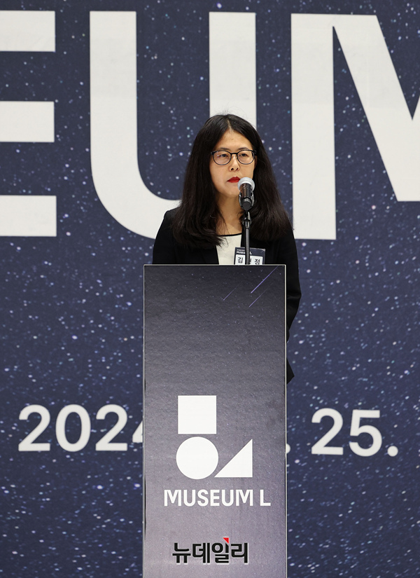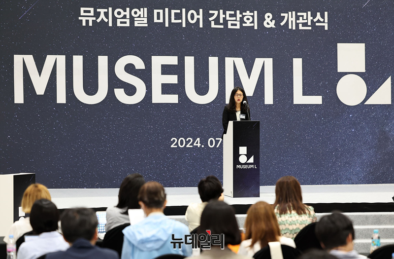 김현정 뮤지엄엘 총괄디렉터가 25일 오전 인천 중구 상상플랫폼에 공식 오픈을 앞두고 열린 간담회 및 개관식에서 뮤지엄 소개를 하고 있다.인천 상상플랫폼에 위치한 뮤지엄엘은 미디어아트와 순수미술, 이색·테마 등 다양한 장르의 전시를 한 자리에 만나볼 수 있는 공간이다. 인천역, 차이나타운, 월미도 등 인천 주요 관광지와 인접해 있다.1관에는 루브르박물관과 디지털 전시 개발사 그랑팔레 이머시브가 공동제작한 다감각형 미디어아트 콘텐츠 '모나리자 이머시브'가 전시된다. 2관은 아메리칸 스타일을 대표하는 현대 미술의 거장 '알렉스 카츠'의 원화가 전시된다. 3관에는 이랜드뮤지엄과 협업한 '위대한 농구선수 75인전'이 전시된다.뮤지엄엘은 오픈을 기념해 7월 31일까지 1~3관 전시 입장권을 최대 40% 할인된 가격으로 한정 판매한다. 현장 티켓부스와 네이버 예약을 통해 구매 가능하다. (인천=정상윤 기자)