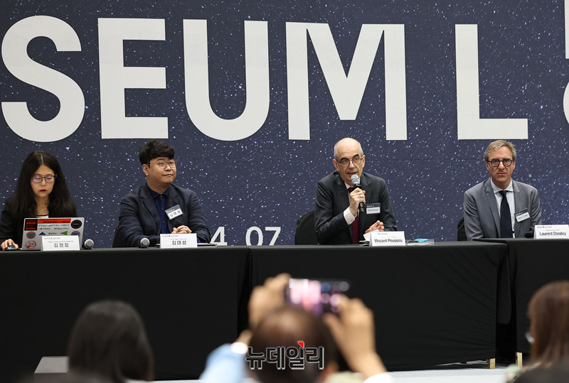 Vincent Poussou 그랑팔레 이머스비 회장 겸 RNM 이사가 25일 오전 인천 중구 상상플랫폼에 공식 오픈을 앞두고 열린 간담회 및 개관식에서 인사말을 하고 있다.인천 상상플랫폼에 위치한 '뮤지엄엘'은 미디어아트와 순수미술, 이색·테마 등 다양한 장르의 전시를 한 자리에 만나볼 수 있는 공간이다. 인천역, 차이나타운, 월미도 등 인천 주요 관광지와 인접해 있다.1관에는 루브르박물관과 디지털 전시 개발사 그랑팔레 이머시브가 공동제작한 다감각형 미디어아트 콘텐츠 '모나리자 이머시브'가 전시된다. 2관은 아메리칸 스타일을 대표하는 현대 미술의 거장 '알렉스 카츠'의 원화가 전시된다. 3관에는 이랜드뮤지엄과 협업한 '위대한 농구선수 75인전'이 전시된다. 3개 전시관 외에도 라운지, 강연, 교육, 체험 프로그램을 제공하는 세미나실로 전체 공간을 구성했다.뮤지엄엘은 오픈을 기념해 7월 31일까지 1~3관 전시 입장권을 최대 40% 할인된 가격으로 한정 판매한다. 현장 티켓부스와 네이버 예약을 통해 구매 가능하다. (인천=정상윤 기자)