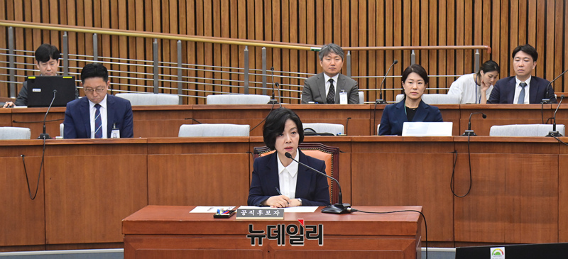 이숙연 대법관 후보자가 25일 오전 국회에서 열린 국회인사청문특별위원회 인사청문회에서 의원들의 질문에 답하고 있다.