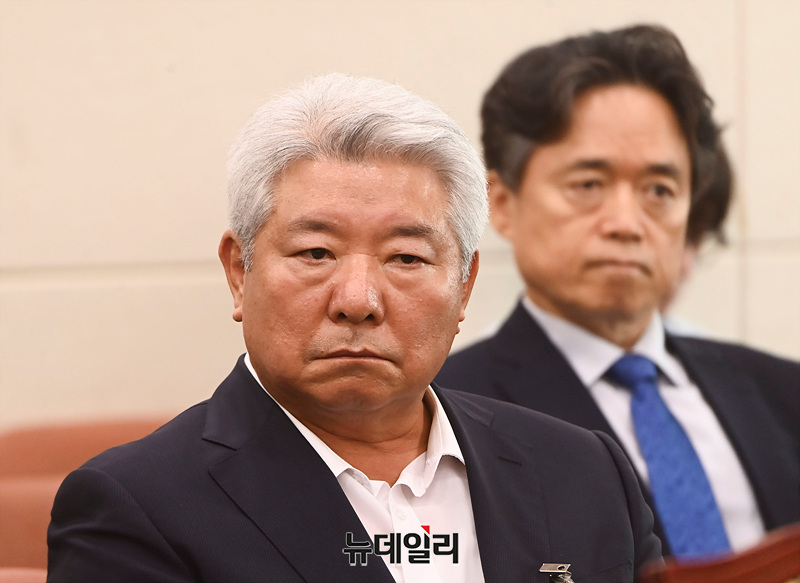 김홍일 전 방송통신위원회 위원장이 25일 오후 서울 여의도 국회에서 열린 이진숙 방송통신위원장 후보자 인사청문회에서 출석해 자리하고 있다.