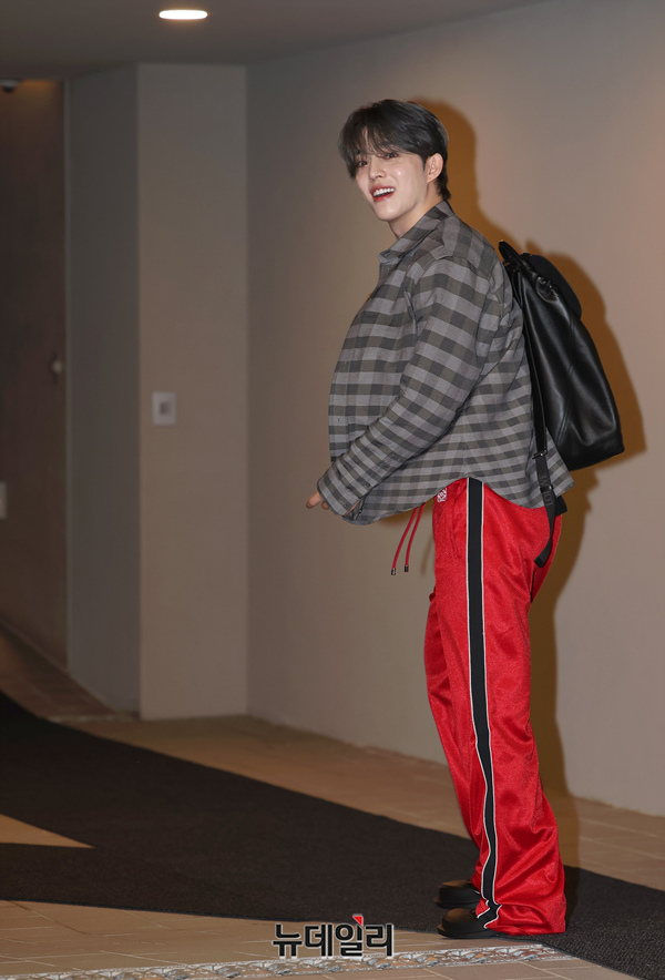세븐틴 에스쿱스가 25일 오후 서울 강남구 '까사 로에베 서울' 오픈행사에서 포즈를 취하고 있다.