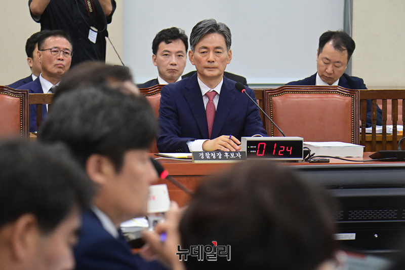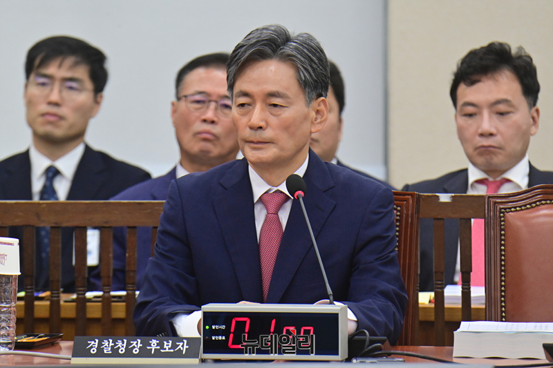 조지호 경찰청장 후보자가 29일 오전 국회에서 열린 인사청문회에서 의원들의 질문에 답하고 있다.