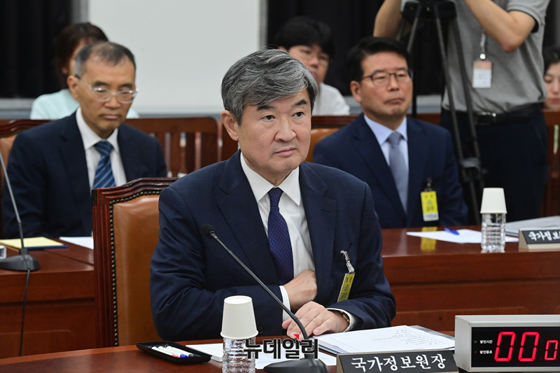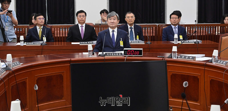 조태용 국가정보원장이 29일 오후 국회에서 열린 국회 정보위원회 전체회의에 참석해 앉아 있다.