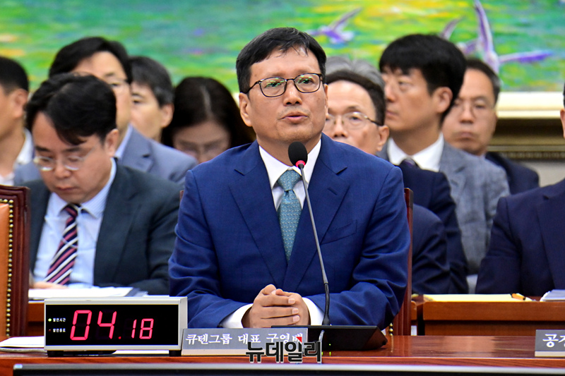구영배 큐텐그룹 대표가 30일 오후 국회 정무위원회에서 열린 '티몬·위메프 정산 및 환불 지연 사태' 관련 긴급 현안질의에 참석해 의원들의 질문에 답하고 있다.