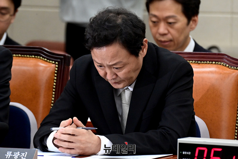 류광진 티몬 대표가 30일 오후 국회 정무위원회에서 열린 '티몬·위메프 정산 및 환불 지연 사태' 관련 긴급 현안질의에 참석해 앉아 있다.