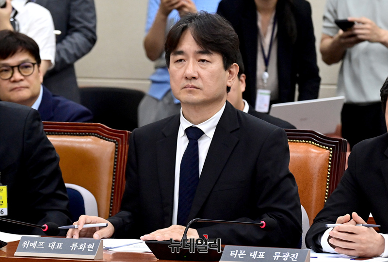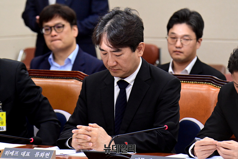 류화현 위메프 대표가 30일 오후 국회 정무위원회에서 열린 '티몬·위메프 정산 및 환불 지연 사태' 관련 긴급 현안질의에 참석해 앉아 있다.