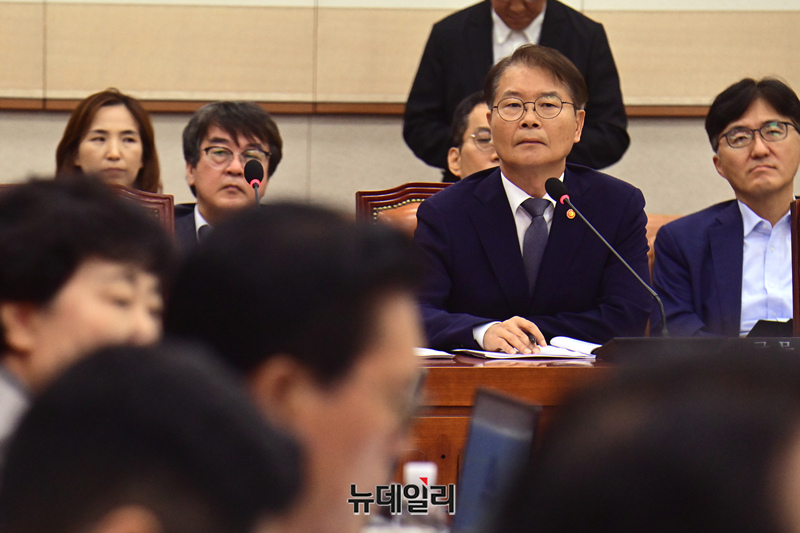 이정식 고용노동부 장관이 31일 오전 국회에서 열린 법제사법위원회 전체회의에서 의원들의 질문에 답하고 있다.