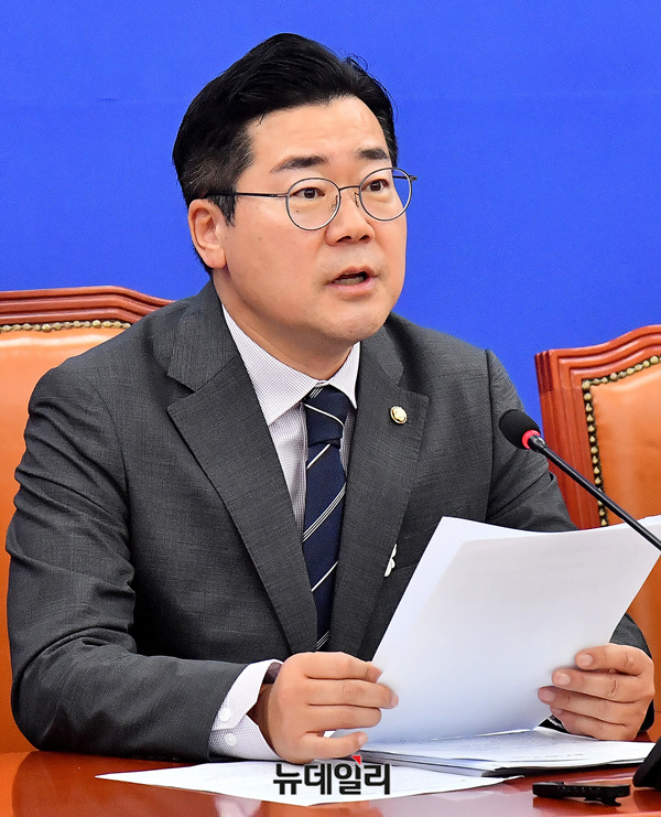 박찬대 더불어민주당 당대표 직무대행 겸 원내대표가 1일 국회에서 열린 정책조정회의에서 모두발언을 하고 있다.