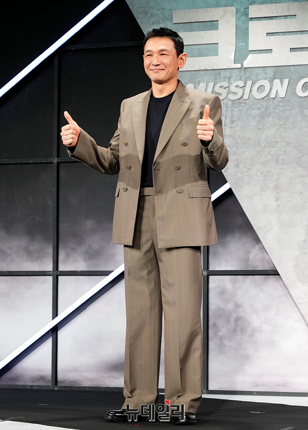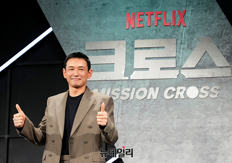 배우 황정민이 5일 오전 서울 중구 앰배서더 서울 풀만에서 열린 넷플릭스 영화 '크로스(감독 이명훈)' 제작보고회에서 포즈를 취하고 있다.