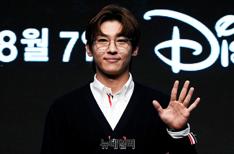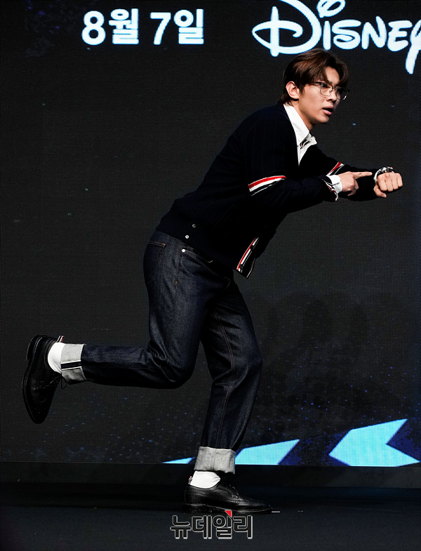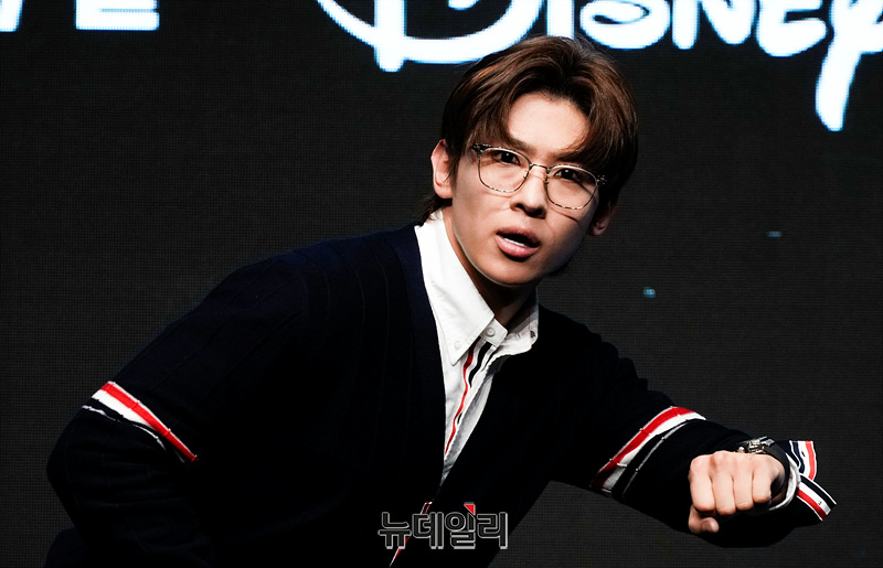 방송인 덱스가 6일 오전 서울 여의도 콘래드 호텔에서 열린 디즈니+ 오리지널 예능 '더 존: 버텨야 산다 시즌3' 제작발표회에서 포즈를 취하고 있다.