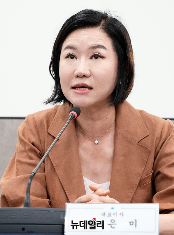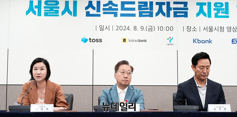 이은미 토스뱅크 대표가 9일 오전 서울 중구 서울시청에서 열린 '서울시 신속드림자금 지원 업무협약식'에서 인사말을 하고 있다.