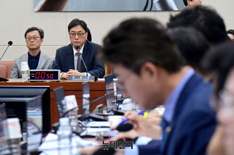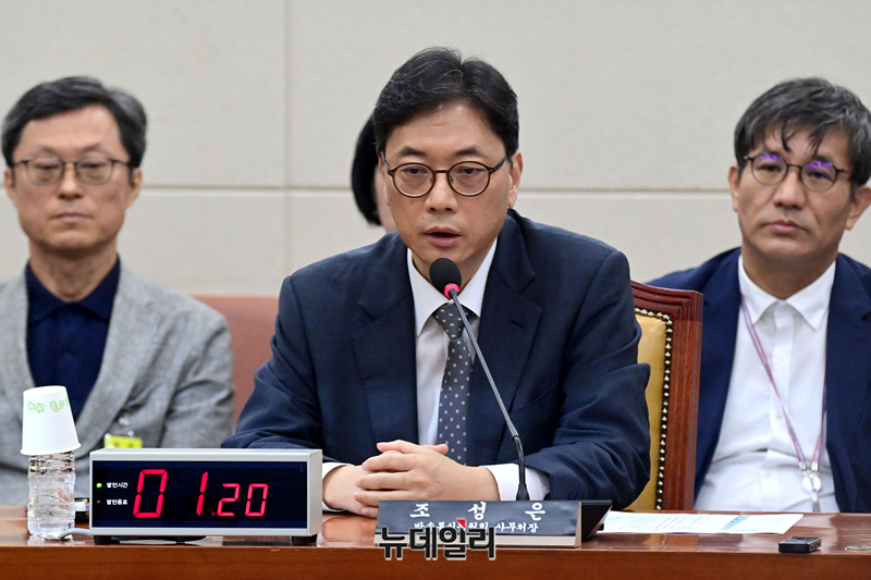 조성은 방송통신위원회 사무처장이 9일 국회 과학기술정보방송통신위원회에서 열린 불법적 방송문화진흥회 이사 선임 등 방송장악 관련 1차 청문회에서 의원들의 질문에 답하고 있다.