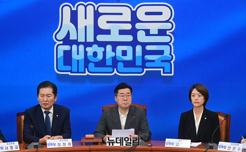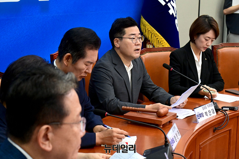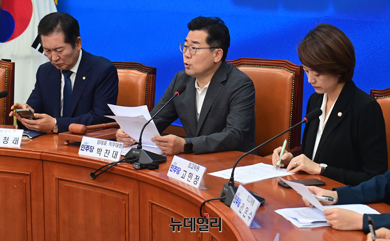 박찬대 더불어민주당 당대표 직무대행 겸 원내대표가 9일 오전 국회에서 열린 최고위원회의에서 발언하고 있다.
