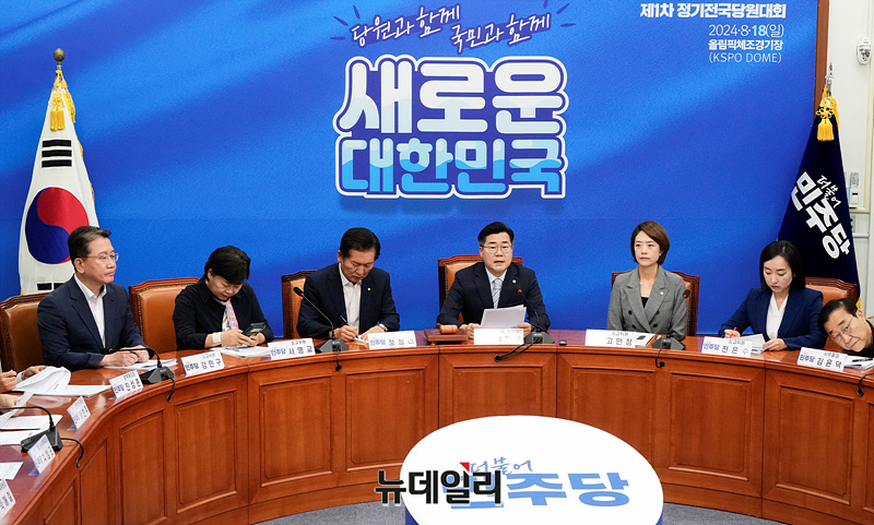 박찬대 더불어민주당 당대표 직무대행 겸 원내대표가 12일 오전 국회에서 열린 최고위원회의에서 속개선언을 하고 있다.