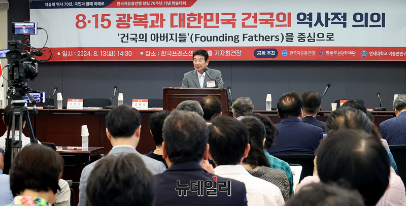 이날 학술대회는 '대한민국 건국의 역사와 8.15 광복의 재조명-건국의 아버지들을 중심으로' 주제로 김명섭 연세대 교수, 김형기 경북대 명예교수가 각각 발제를 맡았다.