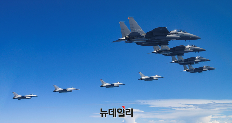 F-15K, KF-16 전투기들이 13일 공군 자체 사전훈련을 진행하고 있다.