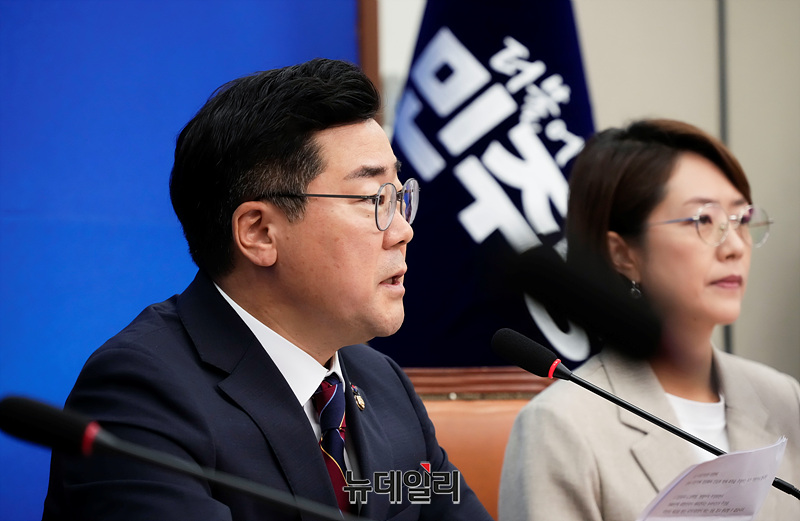 박찬대 더불어민주당 당대표 직무대행 겸 원내대표가 14일 오전 서울 여의도 국회에서 열린 최고위원회의에 참석해 모두발언을 하고 있다.