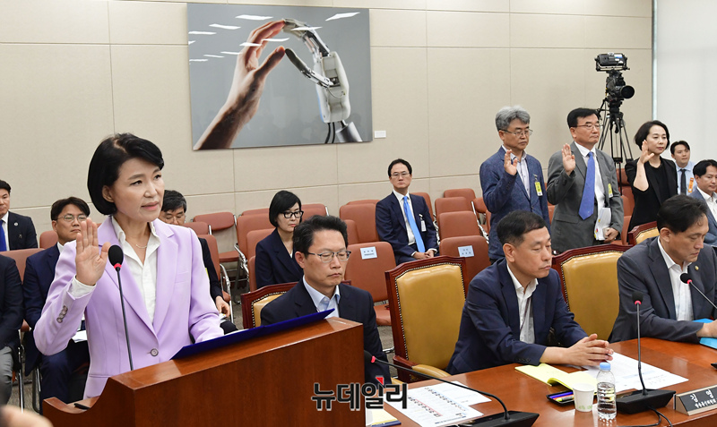 [포토] 청문회 증인선서 하는 이진숙 방송통신위원장