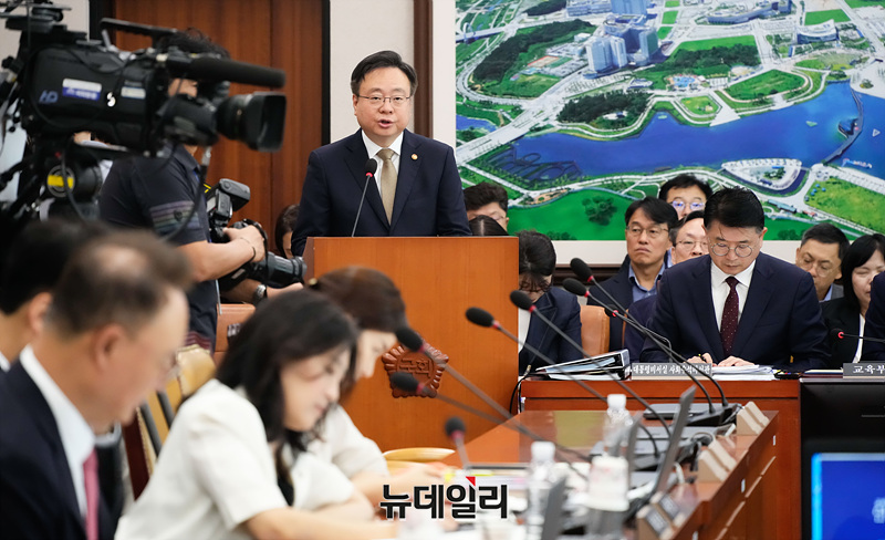 조규홍 보건복지부 장관이 16일 오전 서울 여의도 국회에서 열린 '의대 정원 증원에 따른 의과대학 교육 점검 연석 청문회'에서 업무보고를 하고 있다.