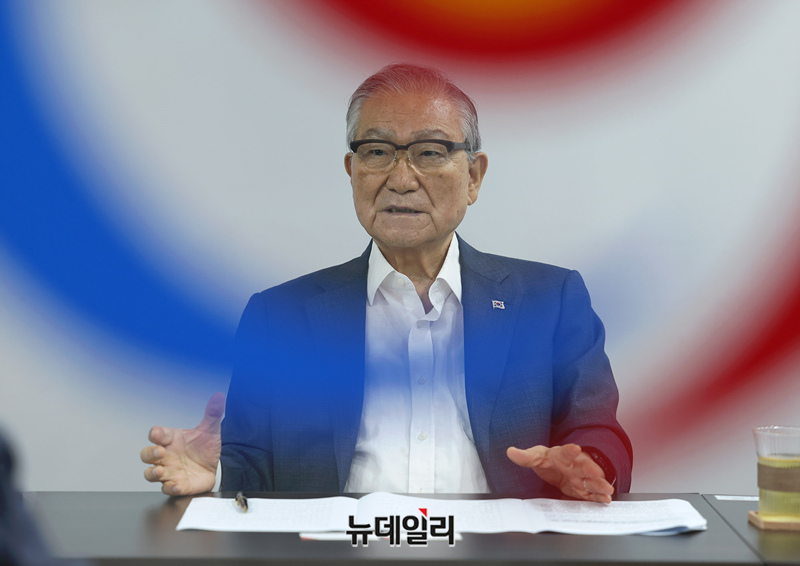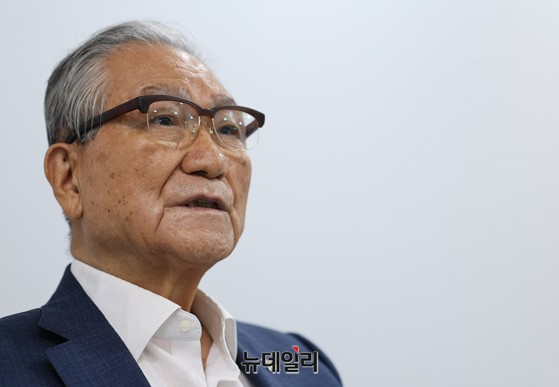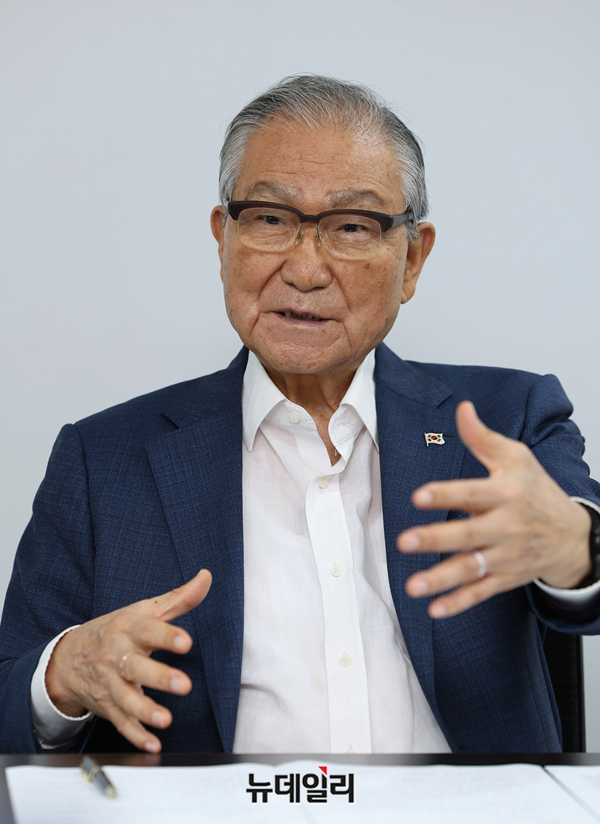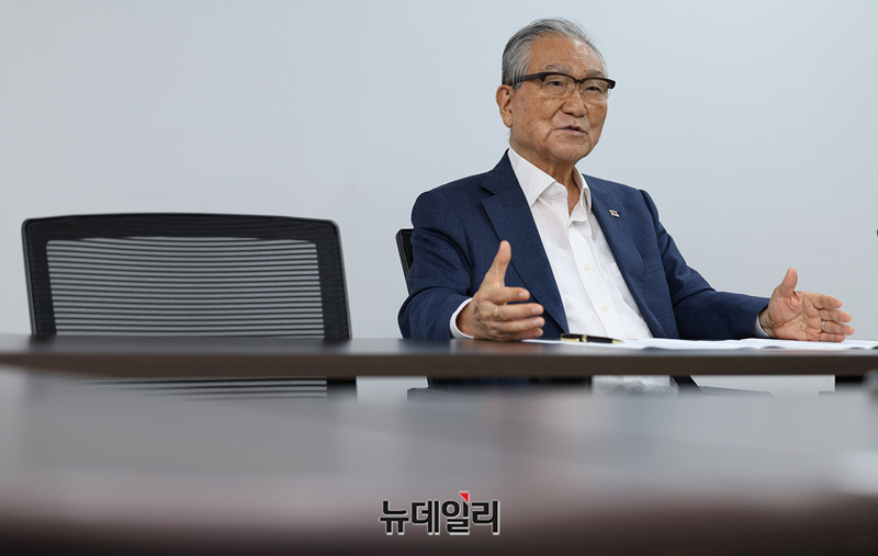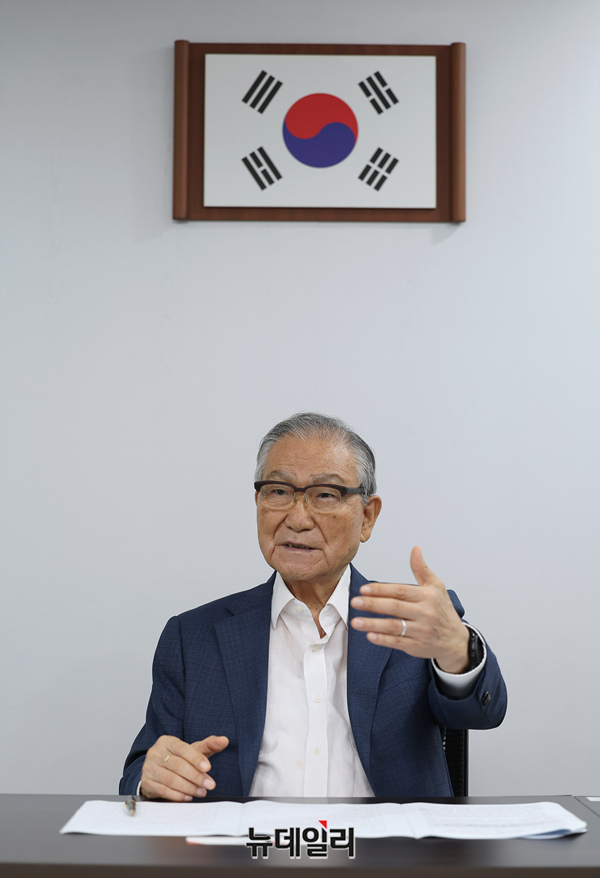 손병두 이승만대통령기념재단 부지선정위원장이 16일 오전 서울 여의도 대한민국역사와미래 사무실에서 기념관과 관련해 뉴데일리와 인터뷰를 갖고 있다.