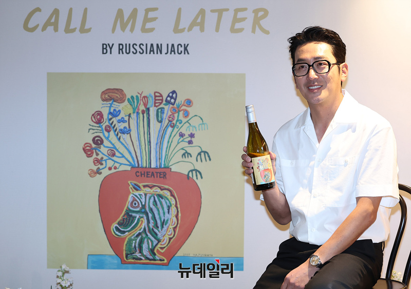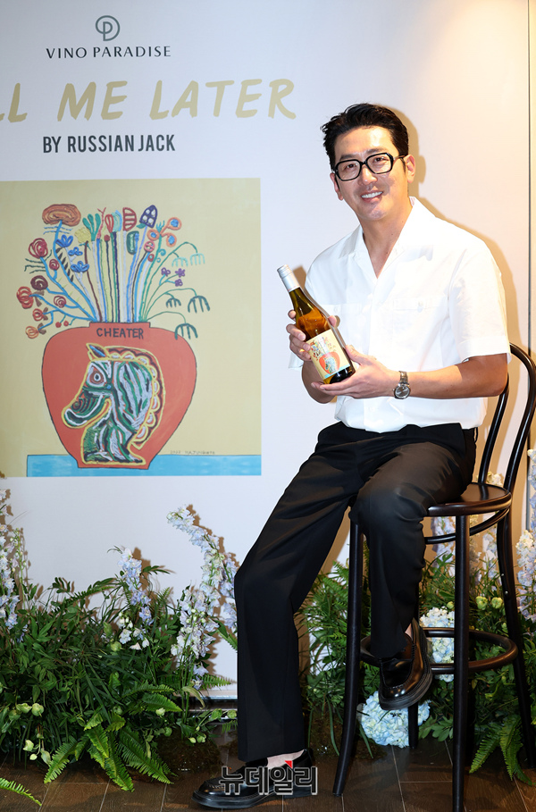 배우 하정우가 16일 오후 서울 용산구 비노파라다이스 한남에서 열린 한정판 에디션 와인 '콜 미 레이터(Call Me later)' 출시행사에서 포즈를 취하고 있다.파라다이스그룹 와인 전문 회사 비노파라다이스는 배우 겸 화가 하정우의 라벨 디자인을 적용한 에디션 와인을 17일 출시한다.이번 에디션의 라벨 디자인으로 재탄생한 '콜 미 레이터'는 2022년 표갤러리에서 열린 하정우 개인전에서 선보인 작품이다.영화 촬영차 모로코로 떠난 하정우가 현지 전통 공예인 도자기와 카펫의 기하학적인 아라베스크 패턴에서 영감을 받아 현대적 감각으로 풀어낸 작품이다.한정판 '하정우 에디션'은 17일부터 편의점 세븐일레븐에서 단독 판매 할 예정이다.