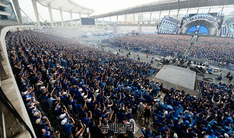'싸이 흠뻑쇼'를 찾은 관람객들이 17일 오후 인천 서구 인천아시아드 주경기장에서 열린 '싸이 흠뻑쇼 SUMMER SWAG 2024'를 즐기고 있다. (인천=서성진 기자)