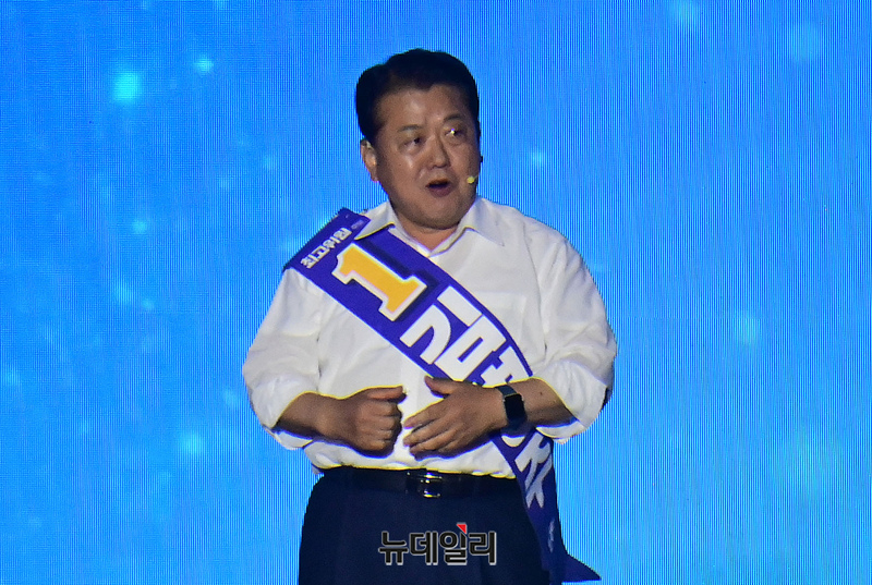 김병주 더불어민주당 최고위원 후보가 18일 오후 서울 송파구 올림픽공원 KSPO돔에서 열린 더불어민주당 제1차 정기전국당원대회에서 정견발표를 하고 있다.