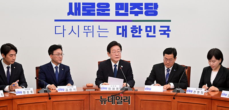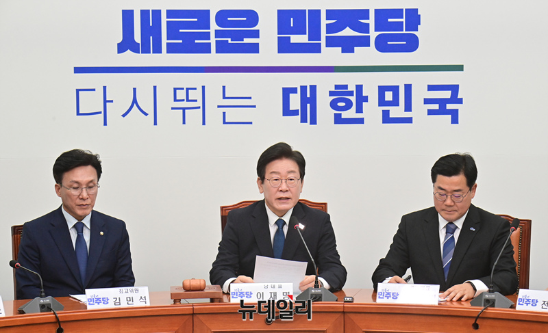 이재명 더불어민주당 대표가 19일 오전 국회에서 열린 최고위원회의에 참석해 모두발언을 하고 있다.