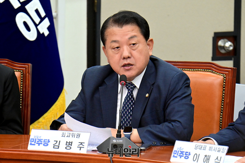 김병주 더불어민주당 최고위원이 19일 오전 국회에서 열린 최고위원회의에 참석해 모두발언을 하고 있다.