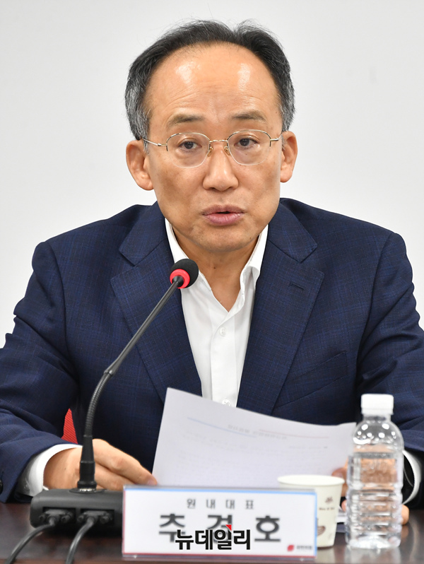 추경호 국민의힘 원내대표가 19일 오전 서울 여의도 중앙당사에서 열린 최고위원회의에서 모두발언을 하고 있다.