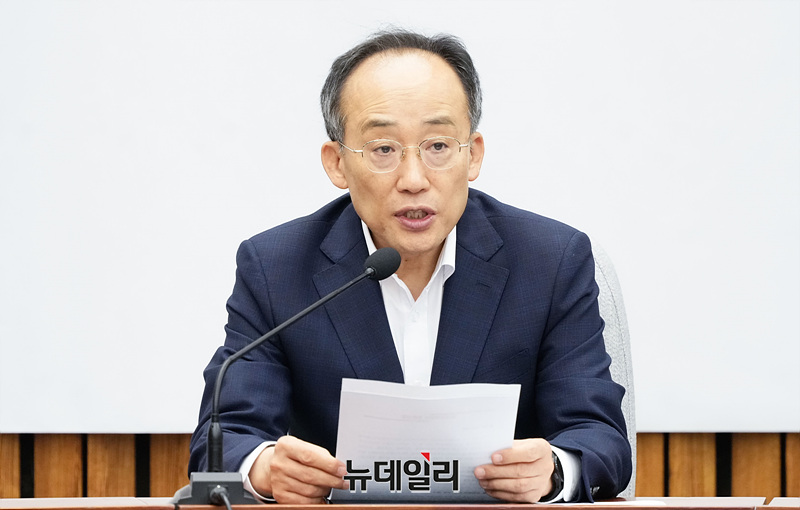 추경호 국민의힘 원내대표가 20일 오전 서울 여의도 국회에서 열린 원내대책회의에서 모두발언을 하고 있다.