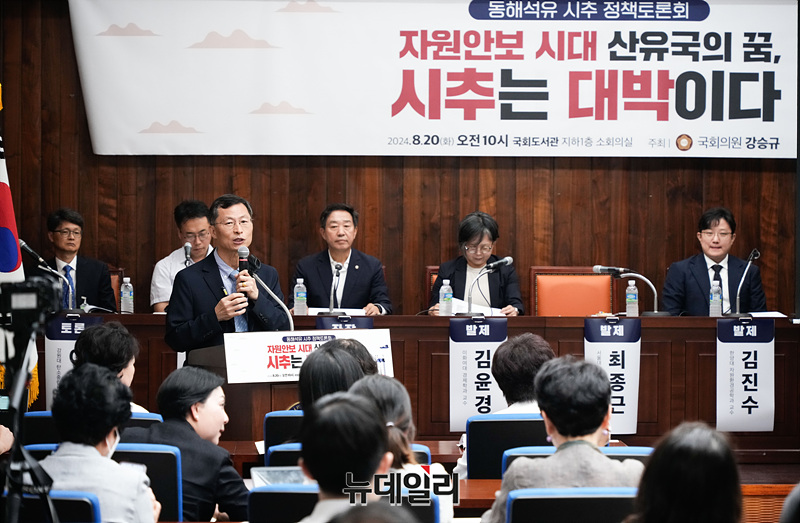 최종근 서울대 에너지자원공학과 교수가 20일 오전 서울 여의도 국회에서 열린 동해석유 시추 정책토론회에서 발제하고 있다.