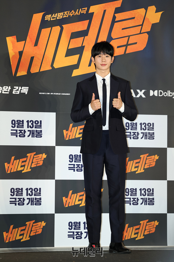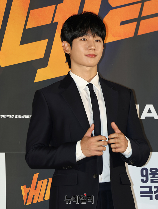 배우 정해인이 20일 오전 서울 CGV용산아이파크몰에서 열린 영화 '베테랑2(감독 류승완)' 제작보고회에서 포토타임을 갖고 있다.