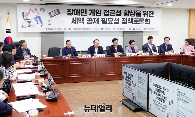 추경호 국민의힘 원내대표가 20일 오후 서울 여의도 국회 의원회관에서 열린 장애인 게임 접근성 향상을 위한 세액 공제 필요성 정책토론회에서 축사를 하고 있다.