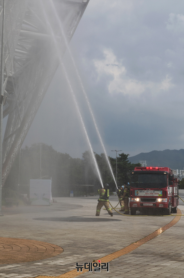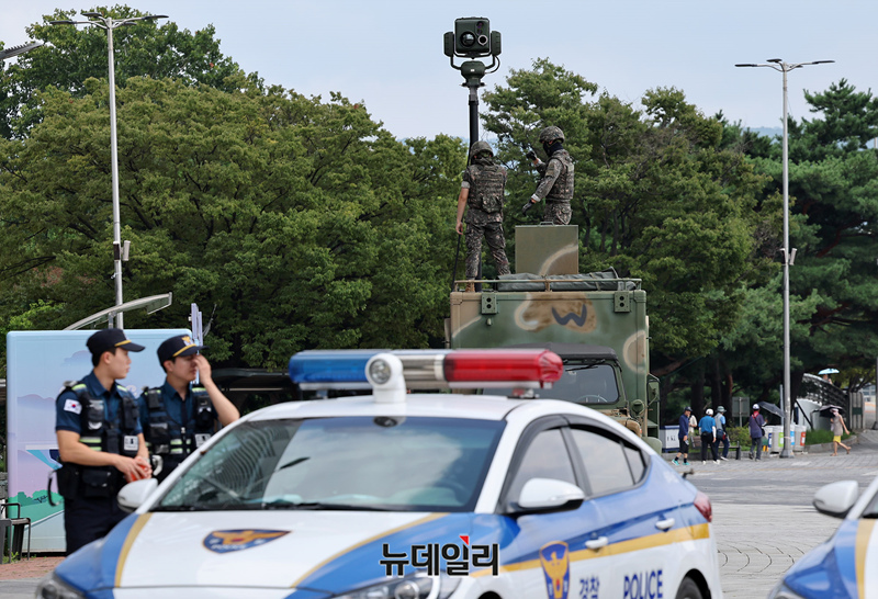 을지연습이 실시되고 있는 20일 오후 서울 송파구 올림픽공원에서 국가중요시설 합동 대테러훈련이 진행되고 있다.
