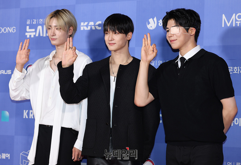 청각장애 아이돌 그룹 빅오션이 22일 오후 서울 강남구 조선팰리스강남 그레이트홀에서 열린 제6회 뉴시스 한류엑스포 포토월 행사에서 포즈를 취하고 있다.