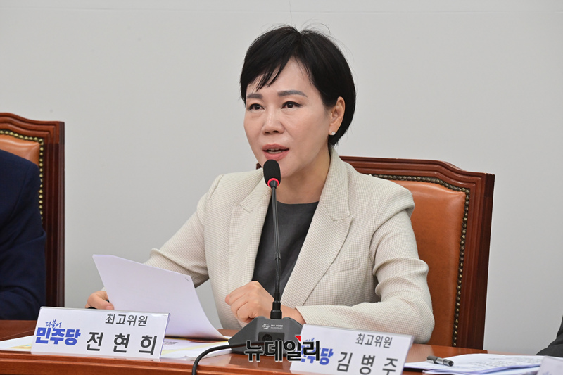전현희 더불어민주당 최고위원이 21일 오전 국회에서 열린 최고위원회의에서 발언을 하고 있다.